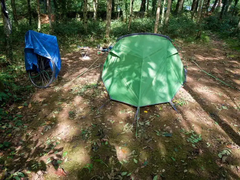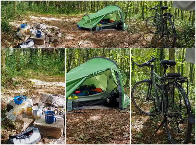 The journey started by taking a train from Surbiton to Totnes via Woking, which took about roughly 6 hours (including an hour’s delay at Exeter St. Davids), then it took a good couple of hours to ride from Totnes to Ashbourne Woods in the rain, the misty stuff which actually helped because of the crazy hills I was sweating like a pig! And once I arrived it was dark, raining and I had to set up my tent…