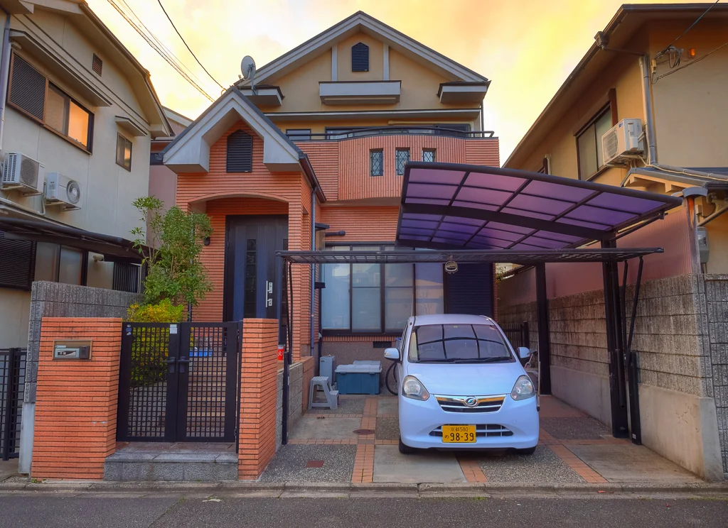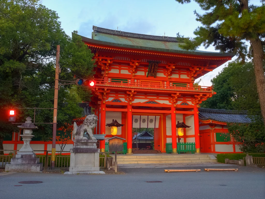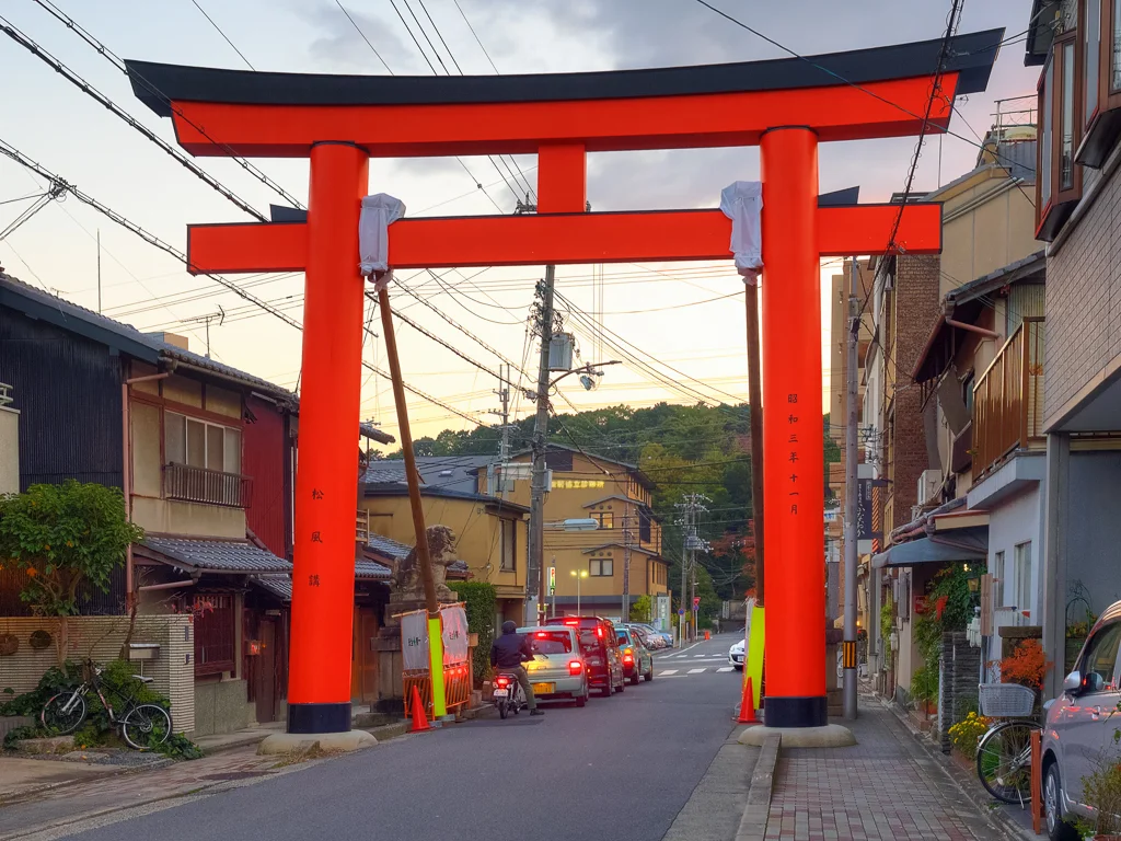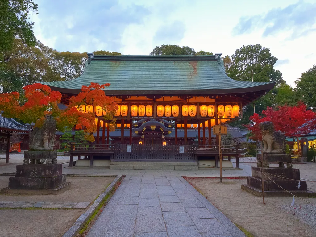 Geisha shop decoration Kita KyotoSmart looking house Kita KyotoPile of motorbikes surround house Kita KyotoTraditional houses in Imamiya Monzen Dori Kita KyotoImamiya Monzen Dori pedestrian torii gate Kita KyotoShinto Shrine entrance Kita KyotoShinto Shrine in autumn colors at dusk Kita KyotoShinto Shrine close up of lanterns Kita KyotoShinto Shrine Red Wooden Bridge Kita Kyoto
