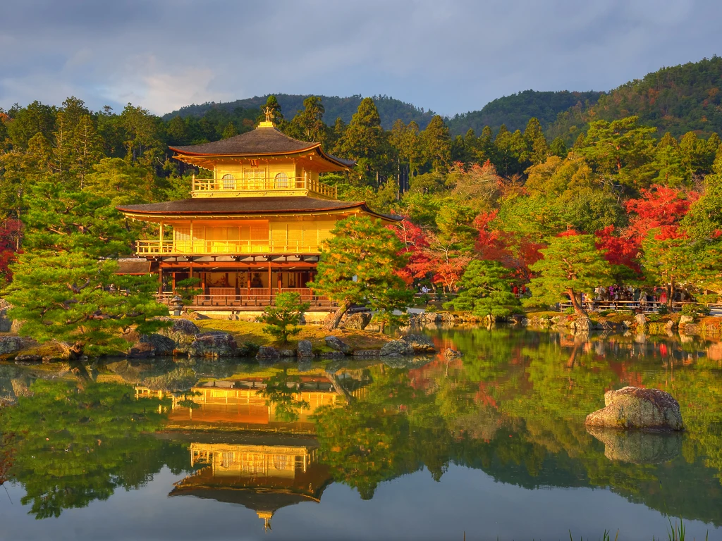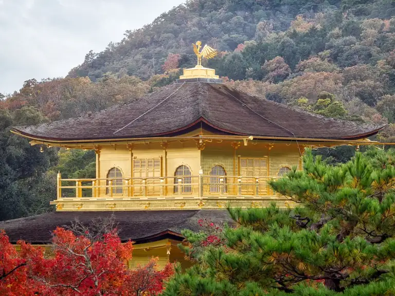 Mobile madness at Kinkaku ji KyotoClose up of the Golden Pavilion at Kinkaku ji KyotoGolden Pavilion pond reflection with autumn colors at Kinkaku ji KyotoGolden Pavilion pond reflection with dramatic sky at Kinkaku ji KyotoSide view of the Golden Pavilion at Kinkaku ji KyotoBack view of the Golden Pavilion with pond reflection and autumn colors at Kinkaku ji KyotoAnmintaku Pond in the temple grounds at Kinkaku ji KyotoYellow autumn colors and old barn at Kinkaku ji KyotoOrange autumn colors and moss on old barn at Kinkaku ji KyotoDelicious matcha ice cream at Kinkaku ji KyotoHot Royal Milk Tea from a vending machine at Kinkaku ji Kyoto