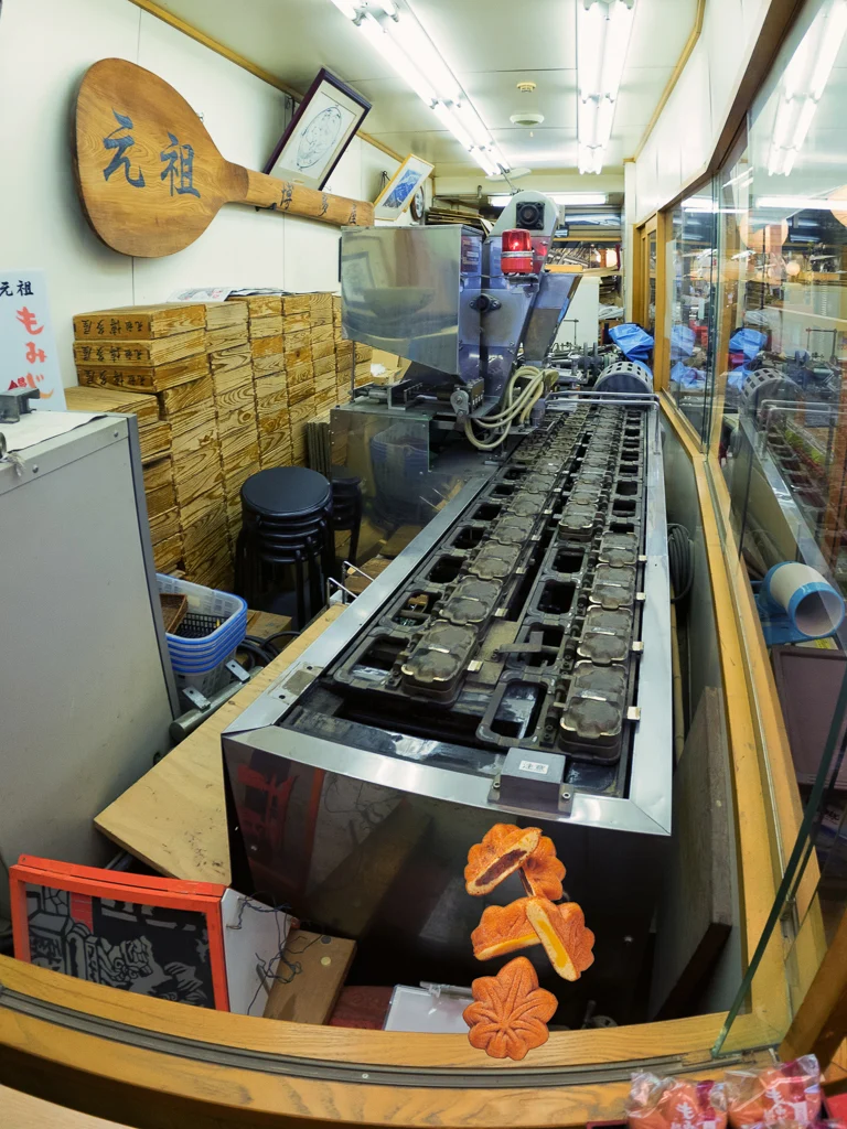 The O Torii Gate floats in the water and is coated with vermilion lacquer to protect it from corrosion Miyajima IslandShell encrusted sign post with The O Torii Gate in the background Miyajima IslandThe locals maintain the island immaculately even on rainy days they can be found cleaning up any unwanted deer extras Miyajima IslandMachine that churns out Momiji Manju and a pretty large rice scoop on the wall Miyajima IslandThe Momiji Manju a Maple leaf shaped Pastry filled with bean paste or various other fillings and exclusive to Miyajima IslandSign for the nightly exhibition of Taiko drums in this hotels lobby Miyajima IslandView from the JR Miyajima Ferry Miyajima IslandThe JR Miyajima Ferry terminal at Miyajimaguchi Miyajima IslandInside of the drivers cab of a original Hiroshima streetcar Miyajimaguchi StationThe classic well presented Ekiben or Bento Box that I got for the Shinkansen breaded pork cutlet style