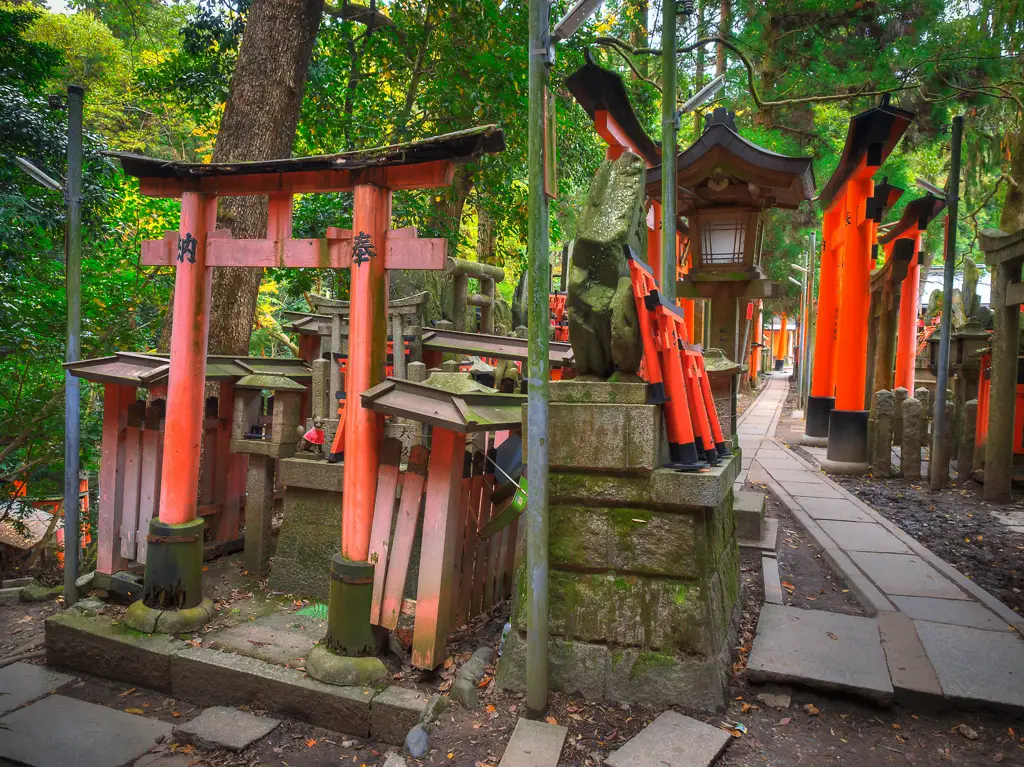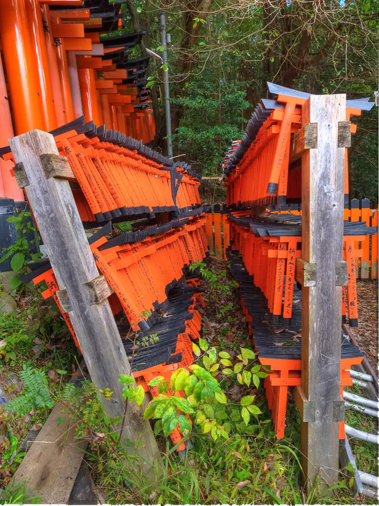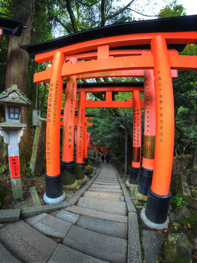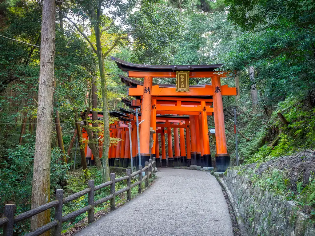 Giant red torii gate at the entrance to Fushimi Inari Taisha KyotoColorful wooden map guide to Fushimi Inari Taisha KyotoBack view of the Romon Gate in Fushimi Inari Taisha KyotoSenbon Torii or thousands of torii gates at Fushimi Inari Taisha KyotoName and date of each donator on these torii gates at Fushimi Inari Taisha KyotoWinding vermilion torii gates leading to the sacred Mount Inari at Fushimi Inari Taisha KyotoTwo woman pause to take a photo of the torii gates and autumn colors at Fushimi Inari Taisha KyotoShin ike Pond and the Kumatakasha at Fushimi Inari Taisha KyotoSpider spins a web in the wooded forest of Fushimi Inari Taisha KyotoWild cat in the wooded forest of Fushimi Inari Taisha KyotoEntrance to many shrines in the wooded forest of Fushimi Inari Taisha KyotoLooking out over Shin ike Pond in Fushimi Inari Taisha KyotoTraversing the steep steps of the woods and shrine in Fushimi Inari Taisha KyotoKitsune or fox statue at a shrine in Fushimi Inari Taisha KyotoMiniature torii gates ready to be donated to the shrines in Fushimi Inari Taisha KyotoStack of miniature torii gates at Fushimi Inari Taisha KyotoYoung and old taking the hike up to sacred Mount Inari at Fushimi Inari Taisha KyotoTemizuya on the way up the sacred Mount Inari at Fushimi Inari Taisha KyotoView of Kyoto from the Yotsutsuji intersection at Fushimi Inari Taisha KyotoOutside look at the torii gates coming back down Mount Inari at Fushimi Inari Taisha KyotoTanuki statue at Fushimi Inari Taisha KyotoBaby cat playing at Fushimi Inari Taisha KyotoBaby cats eating at Fushimi Inari Taisha KyotoMist coming through the wooded forest of autumn colors at Fushimi Inari Taisha KyotoTorii gate and shrines with autumn colors at Fushimi Inari Taisha KyotoOld mossed tree growing through this shrine at Fushimi Inari Taisha KyotoColorful shop entrance at the exit of Fushimi Inari Taisha KyotoSumo wrestling poster KyotoOctopus on a stick KyotoTakoyaki or octopus in a wheat ball KyotoTrain crossing with train to Nara passing by Kyoto