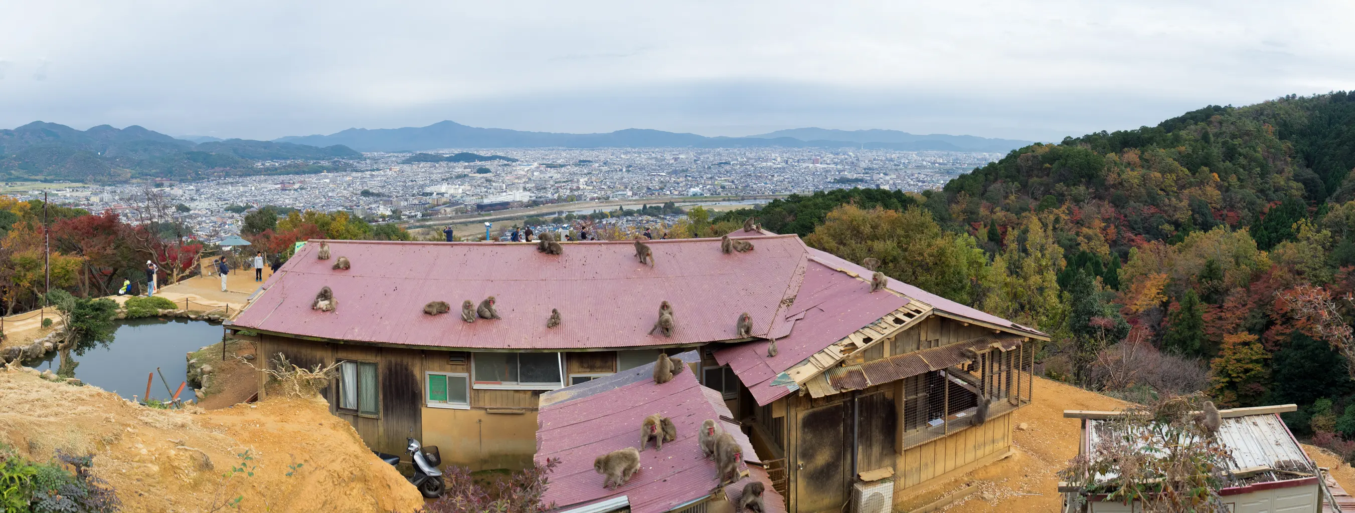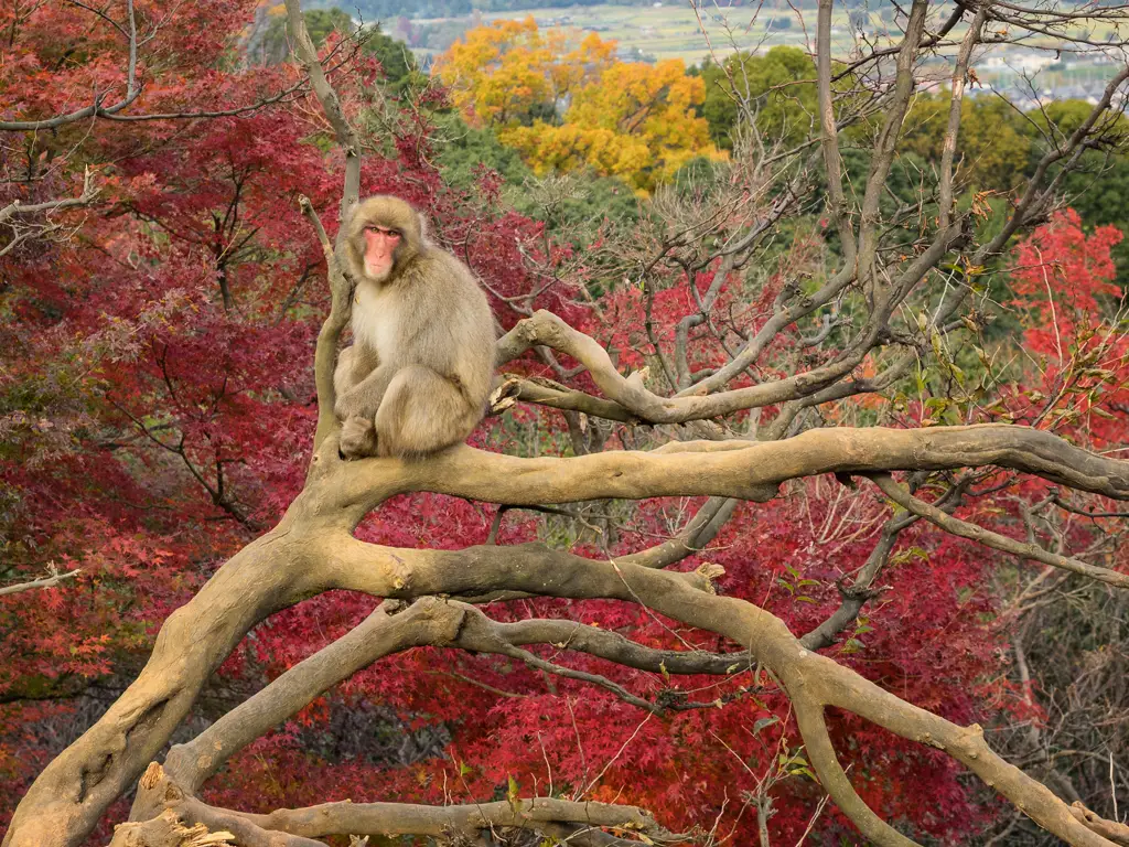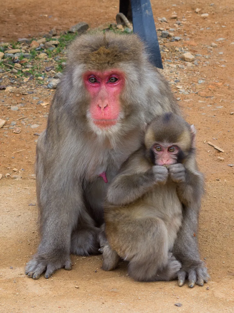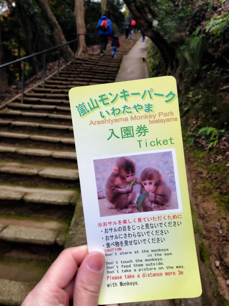 Iwatayama Monkey Park is on top of that hill covered with autumn colors ArashiyamaThe start of a long hike up to the Iwatayama Monkey Park ArashiyamaTicket for the Iwatayama Monkey Park ArashiyamaSnow monkey hanging ten on the hut roof of the Iwatayama Monkey Park ArashiyamaClose up of a Snow Monkey or Japanese macaque at the Iwatayama Monkey Park ArashiyamaScreeching baby Japanese macaque at the Iwatayama Monkey Park ArashiyamaJapanese macaque waiting for the other monkies to stick food through the fence at the Iwatayama Monkey Park ArashiyamaJapanese macaque collecting peanuts at the Iwatayama Monkey Park ArashiyamaJapanese macaques grooming each other Iwatayama Monkey Park ArashiyamaBaby Japanese macaques hitching a ride at the Iwatayama Monkey Park ArashiyamaThe hut roof a poper hang out for the macaques at the Iwatayama Monkey Park ArashiyamaSnow Monkey perched on a tree in the autumn colors at the Iwatayama Monkey Park ArashiyamaGreat view of Arashiyama from the top of the Iwatayama Monkey Park ArashiyamaSnow Monkey watching out at the Iwatayama Monkey Park ArashiyamaBaby Snow Monkey climbs along a sign post at the Iwatayama Monkey Park ArashiyamaFurry baby Snow Monkey starring at us monkeys at the Iwatayama Monkey Park ArashiyamaBaby Snow Monkey with parent at the Iwatayama Monkey Park ArashiyamaThe brilliant autumn colors in the hills of the Iwatayama Monkey Park ArashiyamaThe autumn colored path in the hills of the Iwatayama Monkey Park ArashiyamaMonkey safety sign at the Iwatayama Monkey Park ArashiyamaMap of the hilly Iwatayama Monkey Park ArashiyamaTogetsukyo bridge Arashiyama