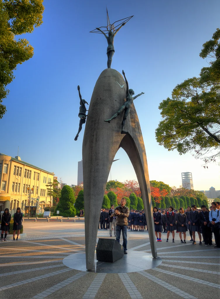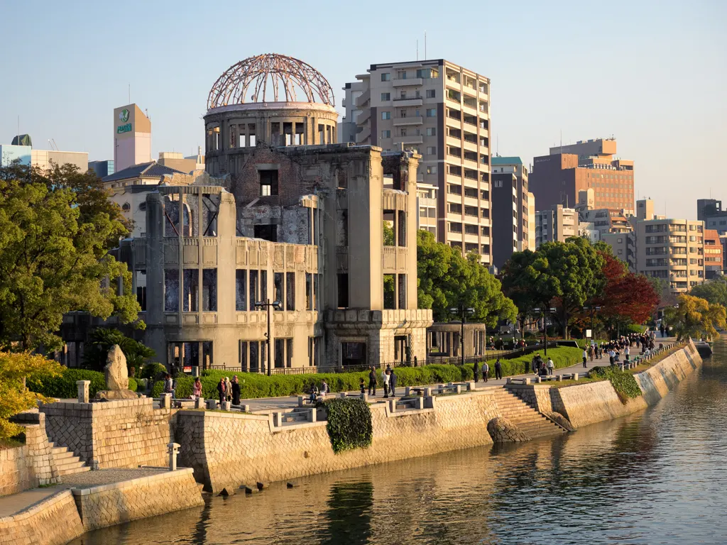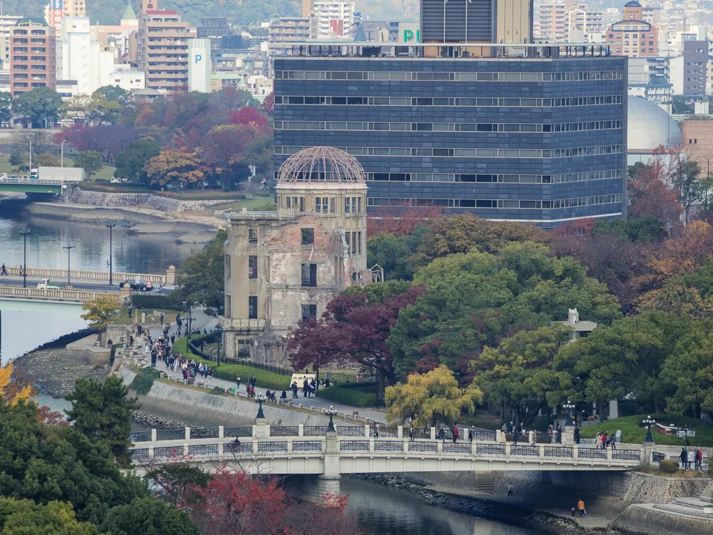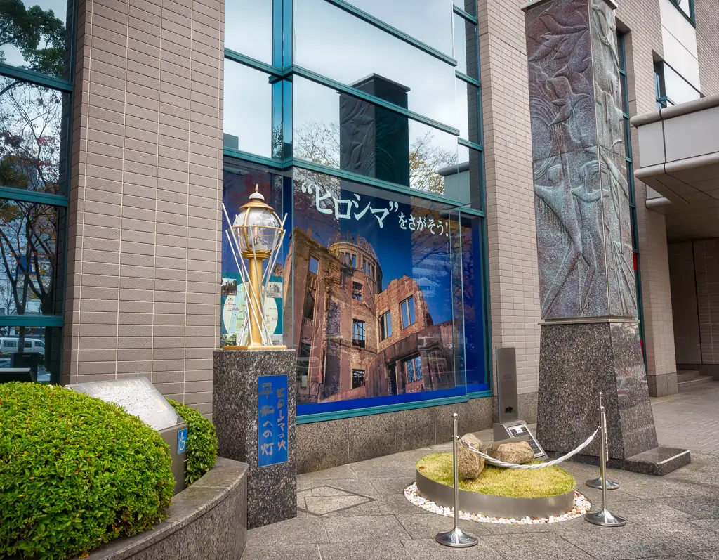 Got this view of the A bomb dome from the top floor of my hotel which was also a restaurant HiroshimaView of the Peace Memorial Museum and park taken from Hotel Sunroutes restaurant floor HiroshimaDetails about the Praying Hands monument HiroshimaThe Praying Hands a monument to all the doctors and nurses who helped in the Atomic bombings of 1945 HiroshimaThe famous FamilyMart where would us Gaijins be without it HiroshimaYou dont see many Stussy shops around these days but they got one here HiroshimaDetail about the surviving bank of the Atomic bombings of 1945 HiroshimaOne of the exsisting street cars or The Moving Streetcar Museum as they are known HiroshimaThis Bank of Japan branch was the only other surviving building of the Atomic bombings of 1945 apart from the A bomb dome HiroshimaJapanese fire hydrants in a row HiroshimaHappy Japanese people crossing the road with a old streetcar in the background HiroshimaJapanese man in a hat rides a bike over Heiwao Bridge HiroshimaWall photo taken by the US military of the Aioi Bridge before it was bombed in 1945 at Hiroshima Peace Memorial Museum HiroshimaWall photo taken by the US military showing the total destruction of Hiroshima after the Atomic bomb landed in 1945 at Hiroshima Peace Memorial Museum HiroshimaVideo exhibit showing the re enactment of the Hiroshima Atomic bombing in 1945 at Hiroshima Peace Memorial Museum HiroshimaWall photo taken by the US military of the flattened buildings including the A bomb dome after Hiroshima was bombed in 1945 HiroshimaWall plaque explains the tragic events of Hiroshima Atomic Bombing in 1945 at Hiroshima Peace Memorial Museum HiroshimaScale model of Little Boy the Atomic bomb that was dropped on Hiroshima on 6 August 1945 by Enola Gay at Hiroshima Peace Memorial Museum HiroshimaScale model of Fat Man the Atomic bomb that was dropped on Nagasaki on 9th August 1945 by Bockscar during World War II at Hiroshima Peace Memorial Museum HiroshimaScale model of the A bomb Dome after the Atomic bomb was dropped on Hiroshima in 1945 at Hiroshima Peace Memorial Museum HiroshimaScale model of the A bomb Dome before the Atomic bomb was dropped on Hiroshima in 1945 at Hiroshima Peace Memorial Museum HiroshimaInside the East Building of the Hiroshima Peace Memorial Museum HiroshimaStudent workcorps unit suit worn by 12 year olds found after the Atomic Bomb Hiroshima Peace Memorial Museum HiroshimaThree year old Shinichi Tetsuya tricycle found buried by his father was found 40 years later after the Atomic Bomb Hiroshima Peace Memorial Museum HiroshimaWatch that stopped at 8.15am the time the Atomic Bomb dropped on Hiroshima Hiroshima Peace Memorial Museum HiroshimaYoshito Matsushiges photograph taken immediatey after the Atomic Bomb dropped on Hiroshima Hiroshima Peace Memorial Museum HiroshimaColorful yellows of a Ginko tree outside the Hiroshima Peace Memorial Museum HiroshimaCenotaph for the Atomic Bomb Victims with the A bomb Dome in the background Hiroshima Peace Memorial Park HiroshimaCenotaph for the Atomic Bomb Victims with the main memorial building in the background Hiroshima Peace Memorial Park HiroshimaThe Childrens Peace Monument a monument for peace to commemorate Sadako Sasaki and all the children who died in the Atomic bombing HiroshimaJapanese man rings the bell in The Childrens Peace Monument Hiroshima Peace Memorial Park HiroshimaView of the A bomb Dome from across the Motoyasu River Hiroshima Peace Memorial Park HiroshimaClose up of the dome structure of the A bomb Dome Hiroshima Peace Memorial Park HiroshimaView of the A bomb Dome from Aioi Bridge HiroshimaOriginal streetcar or The Moving Streetcar Museum 1910 HiroshimaMobilizing Student Memorial Tower students mobilized to labor in order to compensate for the lack of labor force during the war Hiroshima