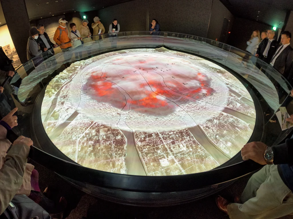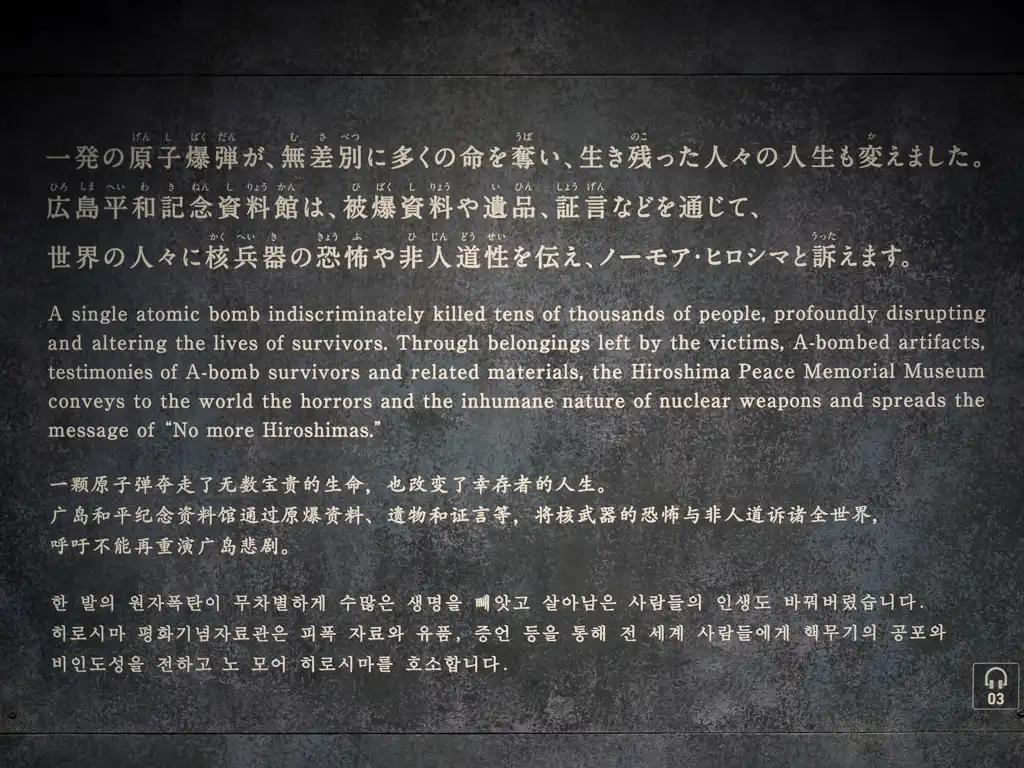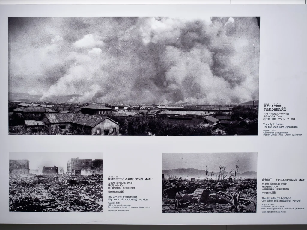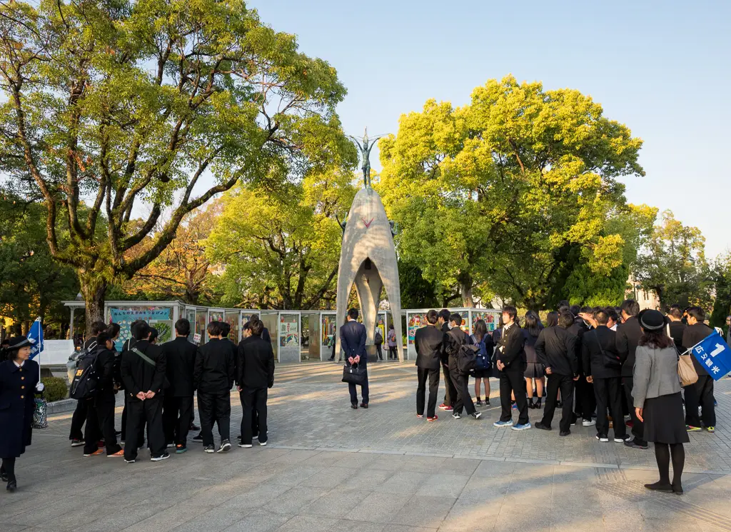 Got this view of the A bomb dome from the top floor of my hotel which was also a restaurant HiroshimaView of the Peace Memorial Museum and park taken from Hotel Sunroutes restaurant floor HiroshimaDetails about the Praying Hands monument HiroshimaThe Praying Hands a monument to all the doctors and nurses who helped in the Atomic bombings of 1945 HiroshimaThe famous FamilyMart where would us Gaijins be without it HiroshimaYou dont see many Stussy shops around these days but they got one here HiroshimaDetail about the surviving bank of the Atomic bombings of 1945 HiroshimaOne of the exsisting street cars or The Moving Streetcar Museum as they are known HiroshimaThis Bank of Japan branch was the only other surviving building of the Atomic bombings of 1945 apart from the A bomb dome HiroshimaJapanese fire hydrants in a row HiroshimaHappy Japanese people crossing the road with a old streetcar in the background HiroshimaJapanese man in a hat rides a bike over Heiwao Bridge HiroshimaWall photo taken by the US military of the Aioi Bridge before it was bombed in 1945 at Hiroshima Peace Memorial Museum HiroshimaWall photo taken by the US military showing the total destruction of Hiroshima after the Atomic bomb landed in 1945 at Hiroshima Peace Memorial Museum HiroshimaVideo exhibit showing the re enactment of the Hiroshima Atomic bombing in 1945 at Hiroshima Peace Memorial Museum HiroshimaWall photo taken by the US military of the flattened buildings including the A bomb dome after Hiroshima was bombed in 1945 HiroshimaWall plaque explains the tragic events of Hiroshima Atomic Bombing in 1945 at Hiroshima Peace Memorial Museum HiroshimaScale model of Little Boy the Atomic bomb that was dropped on Hiroshima on 6 August 1945 by Enola Gay at Hiroshima Peace Memorial Museum HiroshimaScale model of Fat Man the Atomic bomb that was dropped on Nagasaki on 9th August 1945 by Bockscar during World War II at Hiroshima Peace Memorial Museum HiroshimaScale model of the A bomb Dome after the Atomic bomb was dropped on Hiroshima in 1945 at Hiroshima Peace Memorial Museum HiroshimaScale model of the A bomb Dome before the Atomic bomb was dropped on Hiroshima in 1945 at Hiroshima Peace Memorial Museum HiroshimaInside the East Building of the Hiroshima Peace Memorial Museum HiroshimaStudent workcorps unit suit worn by 12 year olds found after the Atomic Bomb Hiroshima Peace Memorial Museum HiroshimaThree year old Shinichi Tetsuya tricycle found buried by his father was found 40 years later after the Atomic Bomb Hiroshima Peace Memorial Museum HiroshimaWatch that stopped at 8.15am the time the Atomic Bomb dropped on Hiroshima Hiroshima Peace Memorial Museum HiroshimaYoshito Matsushiges photograph taken immediatey after the Atomic Bomb dropped on Hiroshima Hiroshima Peace Memorial Museum HiroshimaColorful yellows of a Ginko tree outside the Hiroshima Peace Memorial Museum HiroshimaCenotaph for the Atomic Bomb Victims with the A bomb Dome in the background Hiroshima Peace Memorial Park HiroshimaCenotaph for the Atomic Bomb Victims with the main memorial building in the background Hiroshima Peace Memorial Park HiroshimaThe Childrens Peace Monument a monument for peace to commemorate Sadako Sasaki and all the children who died in the Atomic bombing HiroshimaJapanese man rings the bell in The Childrens Peace Monument Hiroshima Peace Memorial Park HiroshimaView of the A bomb Dome from across the Motoyasu River Hiroshima Peace Memorial Park HiroshimaClose up of the dome structure of the A bomb Dome Hiroshima Peace Memorial Park HiroshimaView of the A bomb Dome from Aioi Bridge HiroshimaOriginal streetcar or The Moving Streetcar Museum 1910 HiroshimaMobilizing Student Memorial Tower students mobilized to labor in order to compensate for the lack of labor force during the war Hiroshima