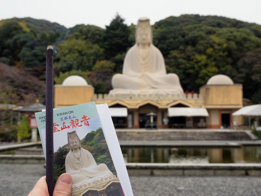 Pacific War Memorial Ryozen Kwannon Temple, KyotoHokanji pagoda temple in autumn colors, KyotoTemple corner figurehead Ryozen Kwannon Temple, KyotoGiant 80ft Concrete Bodhisattva Kwannon Ryozen Kwannon Temple, KyotoNegai No Tama Good Luck Ball Ryozen Kwannon Temple, KyotoMizugo Jizoson Ryozen Kwannon Temple, KyotoGiant 80ft Concrete Bodhisattva Kwannon with pond Ryozen Kwannon Temple, KyotoTraditional kimono hire shop, KyotoTraditional shopping street, KyotoMost advanced toilet in the world with heated seats bidet, KyotoProbably the most scenic clothes washing facilities on the top floor of hotel seiki, Kyoto